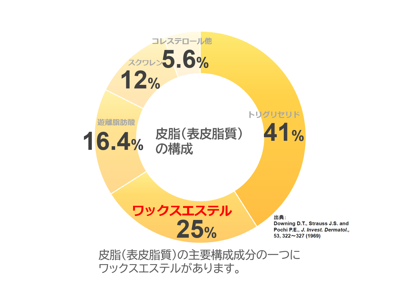 私たちの皮脂にも含まれ、肌の水分蒸発を防ぐ大切な役割を担う「ワックスエステル」。